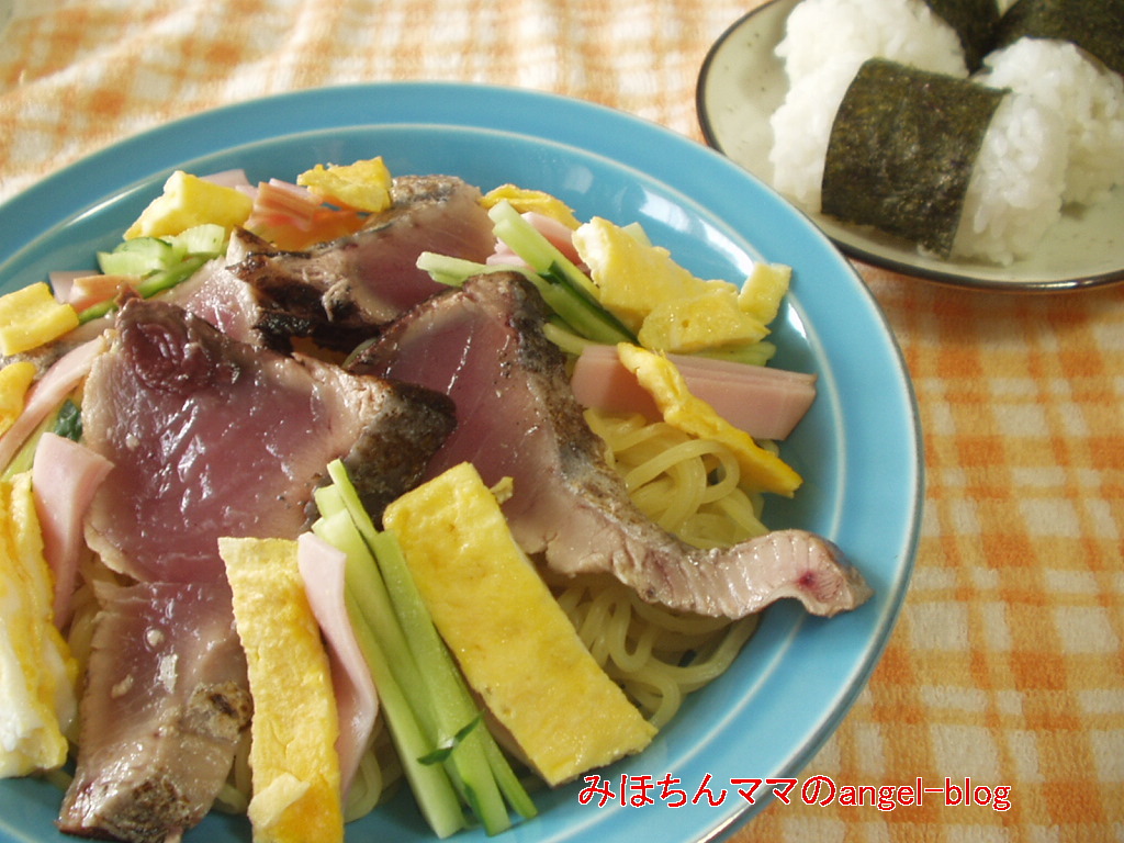 カツオのタタキを乗せて、ちょっと豪華バージョンです☆