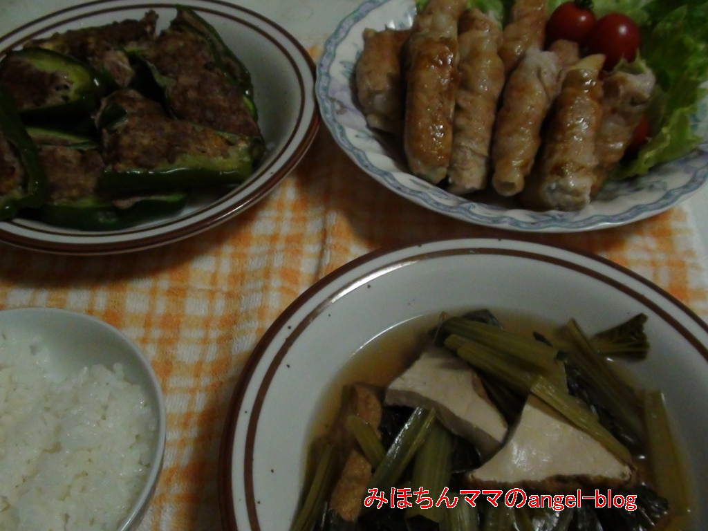 同じく特売品の厚揚げ、小松菜は和風に炊きました。