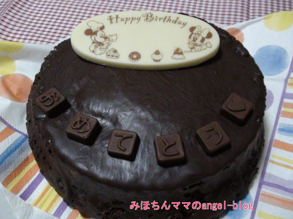 誕生日ケーキはチョコケーキなんですね。飾ってある「おめでとう」のチョコは売っているんですか?お手製ですか?
