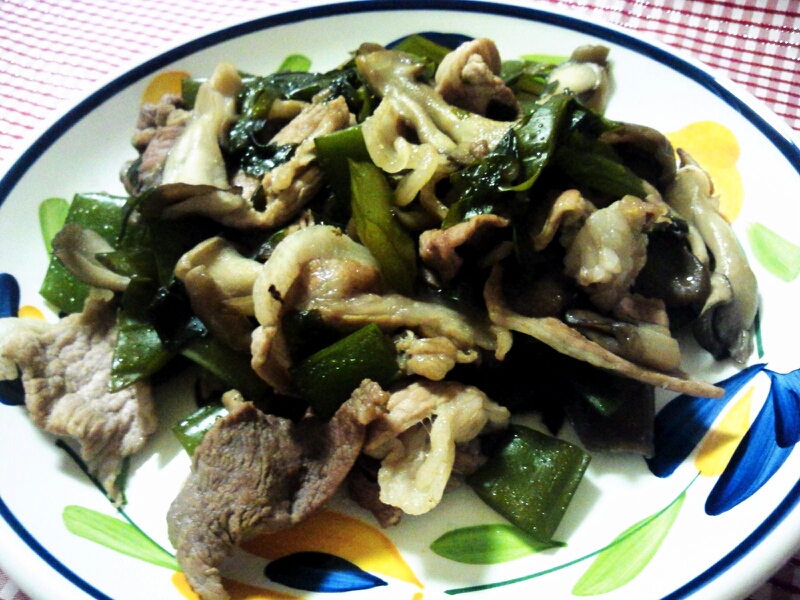 もちろんコレも頂いたワカメ。豚肉・舞茸と一緒にゴマ油で炒めたものです☆