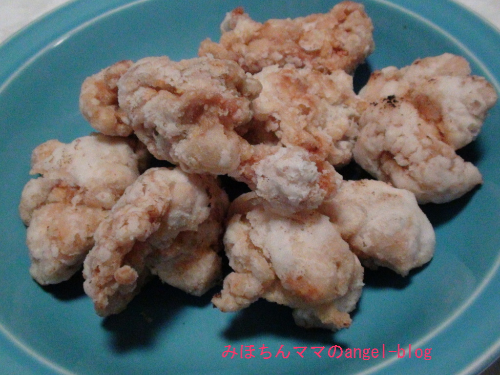 今回は溶き卵→片栗粉の順で衣をつけて揚げただけ☆