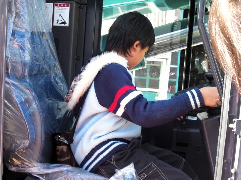 クレーンに乗せてもらった息子
