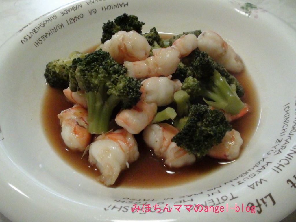 〇エビとブロッコリのオイスターソース炒め