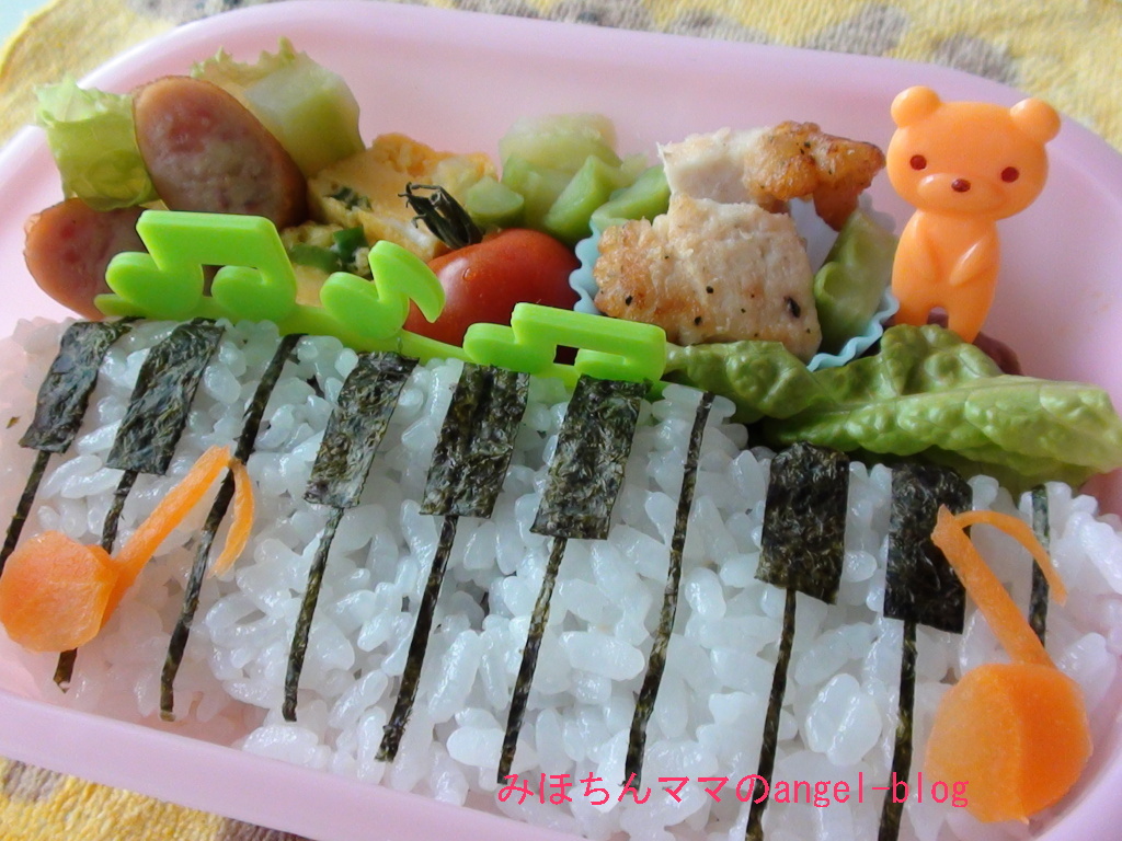 書いた娘。そんな娘を応援弁当って事でピアノキャラ弁です☆