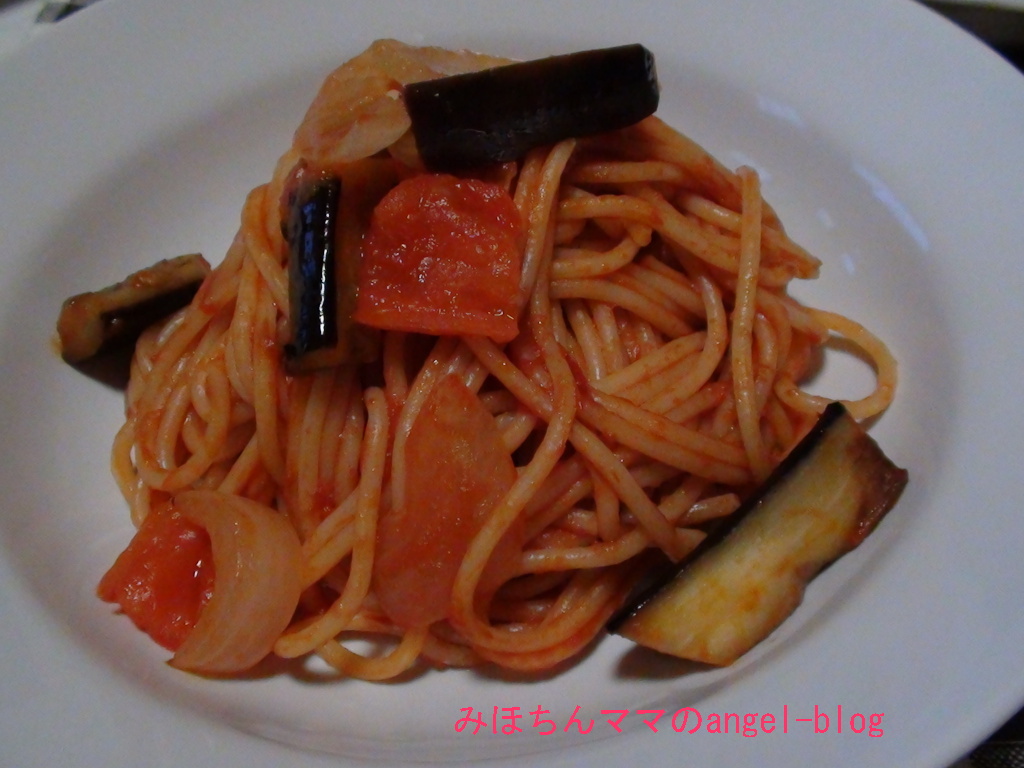 この日のメインはこちら☆茄子とトマトのスパゲティー