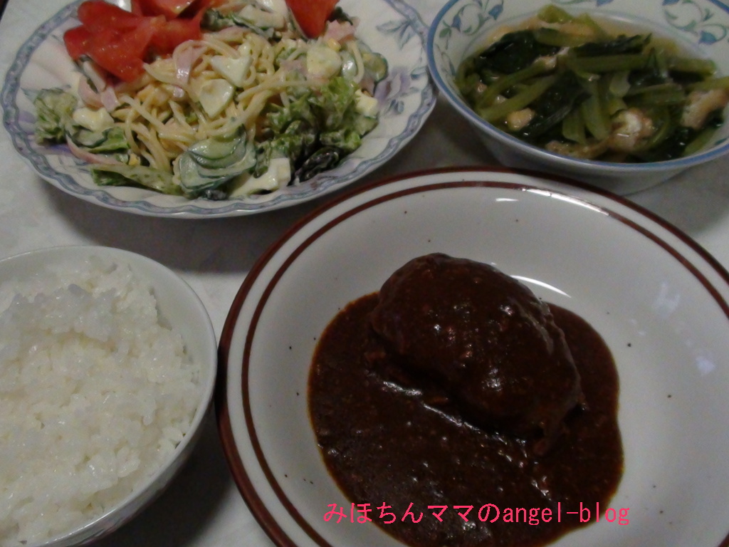 いつもハンバーグの時にスパゲティーサラダを作ってしまう私。