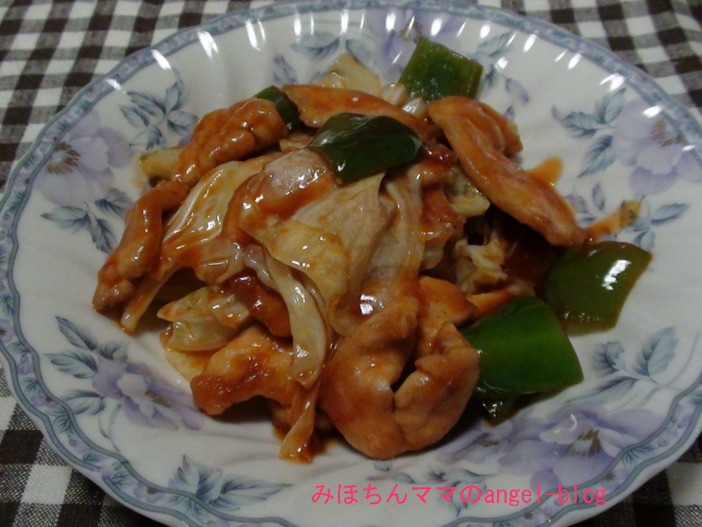 .ピーマン・玉ねぎ・キャベツを炒め、火が通ったら2の鶏肉を戻して軽く炒める。