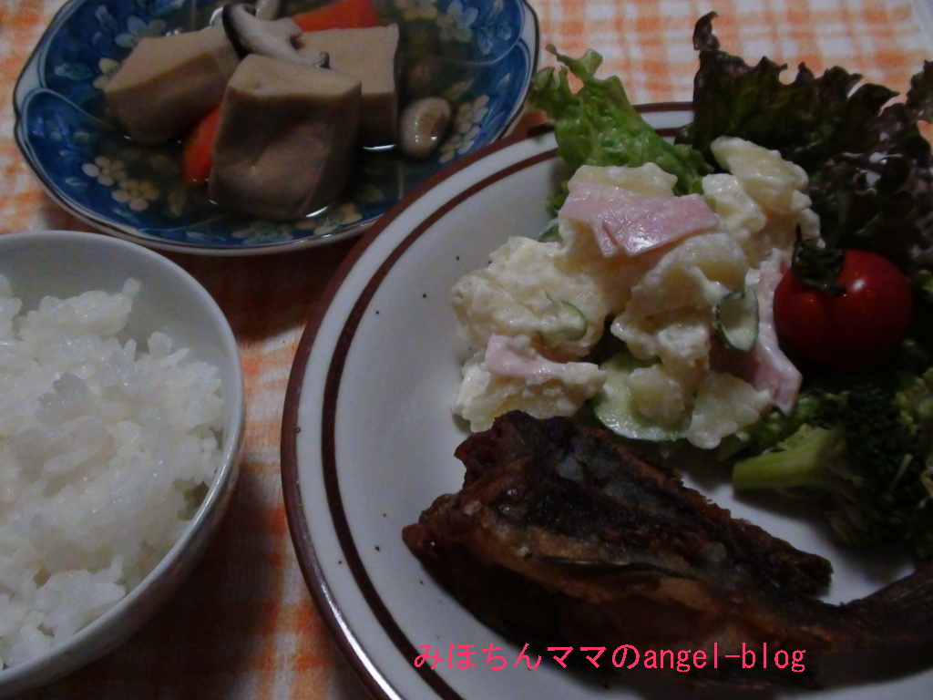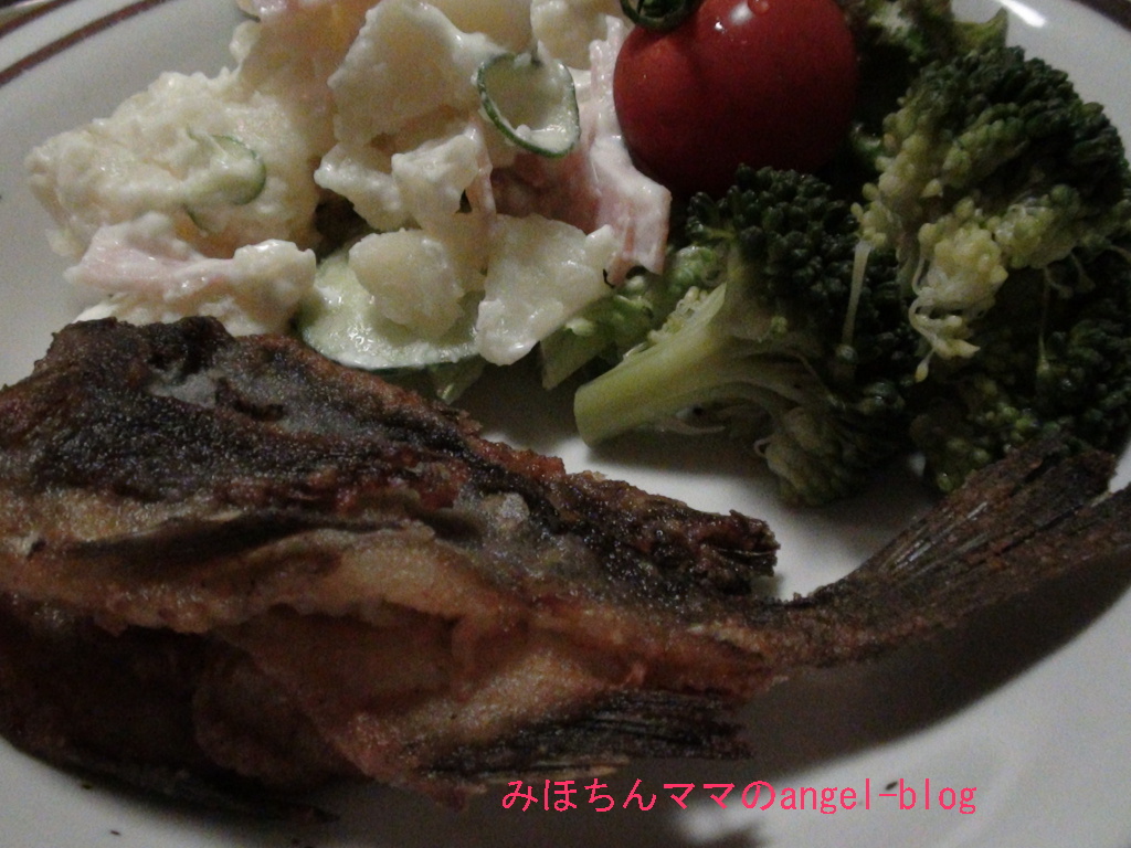前日の残り物、お魚のから揚げを一応のメインに、