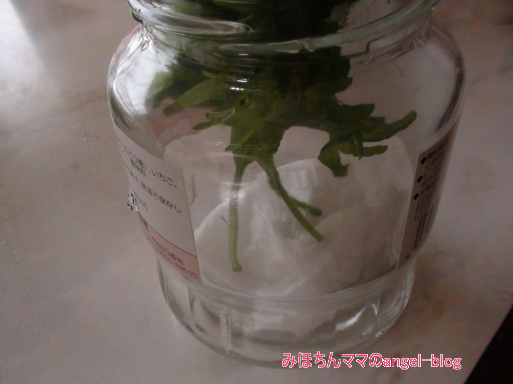 ジャムの空き瓶なのですが、そこに濡らしたキッチンペーパーを