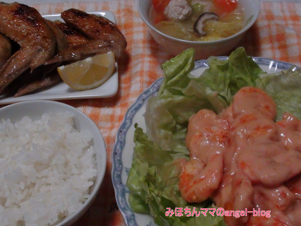 普段は軽く塩焼きする手羽先。今日はエビマヨが少し