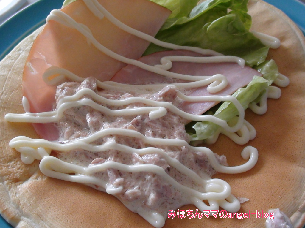 家庭料理ランキング上にレタス・ツナ・ハムを乗せて、くるりと巻いていただきました☆