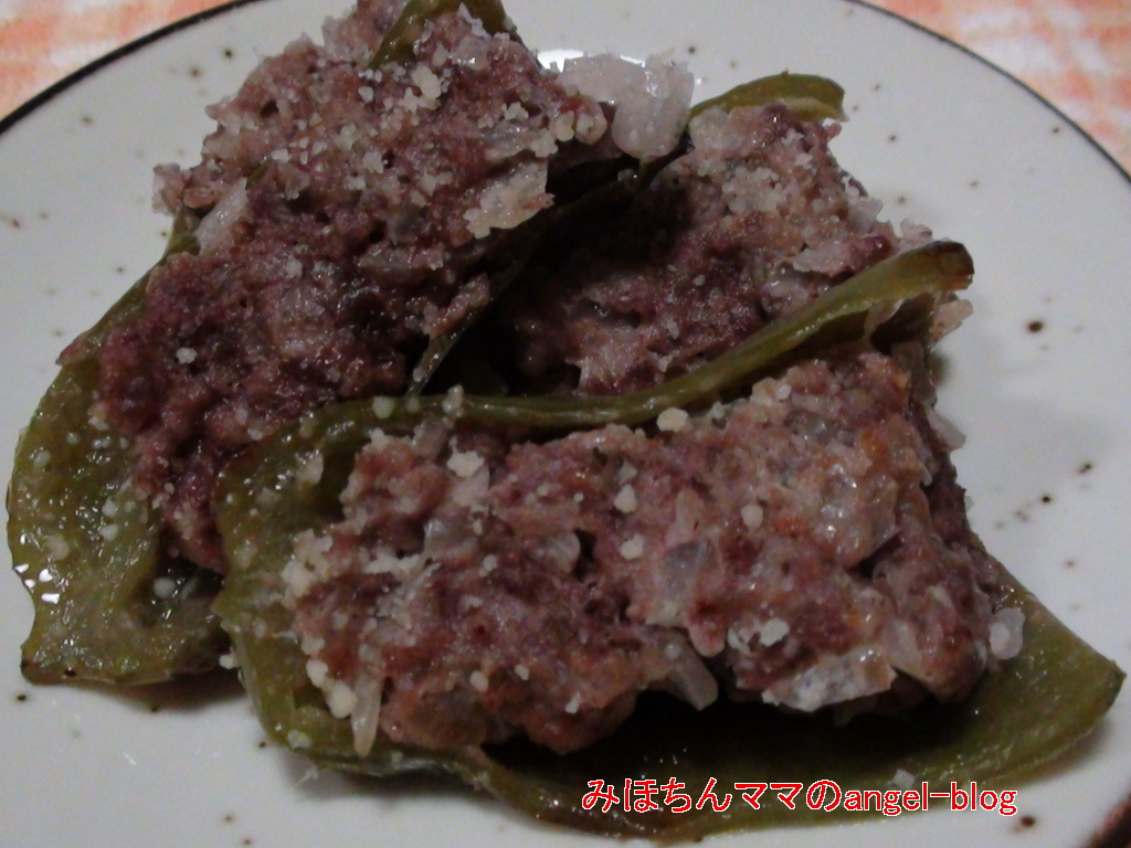 ↑ピーマンの肉詰め。上に白っぽいものが乗っているのは