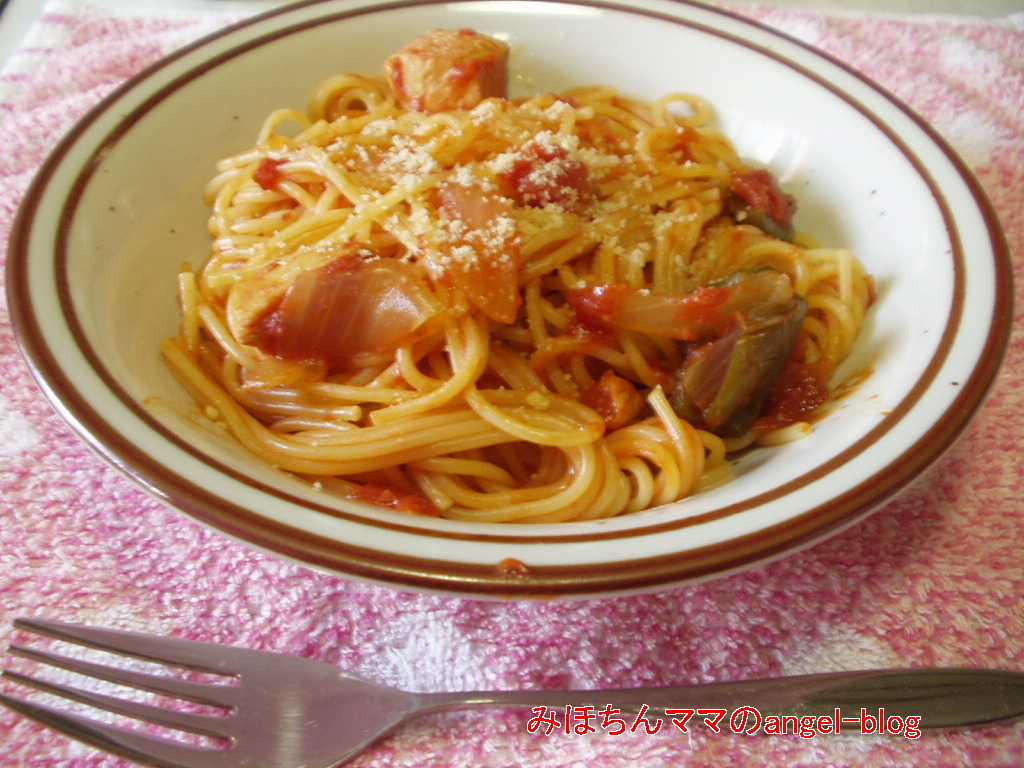調理とレシピブログランキング前日の「鶏のトマト煮込み」をリメイクしたスパゲティー☆