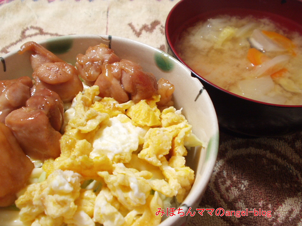 そしてその上に鶏照り焼きと炒り卵を乗せています(*^^*)