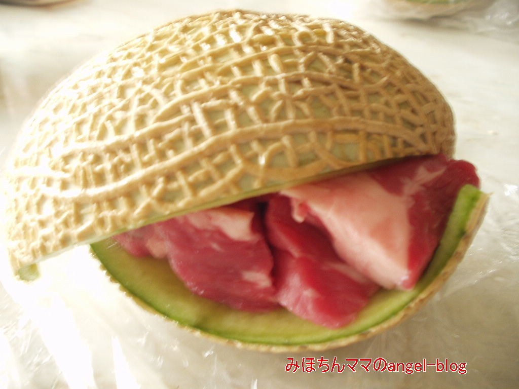 メロンの皮で数時間お肉を挟んでおくだけ。