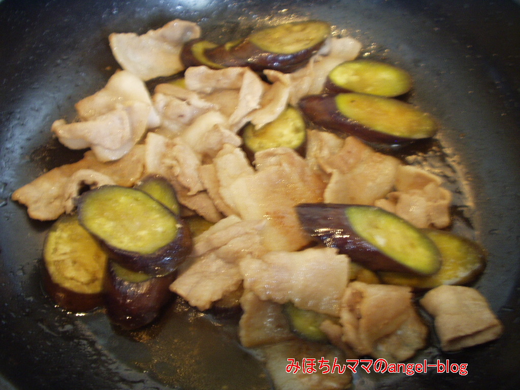 1.茄子・豚肉を食べやすい大きさに切り、フライパンで炒める
