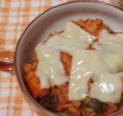 8.お皿に入れて上にとろけるチーズを乗せ、軽くレンジに