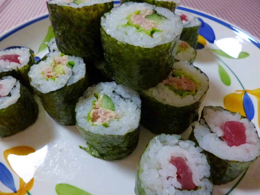 手作りおうちごはん☆トラコミュ集余ったマグロで鉄火巻き。サラダ巻きは子ども達が好きなので2本作りました☆
