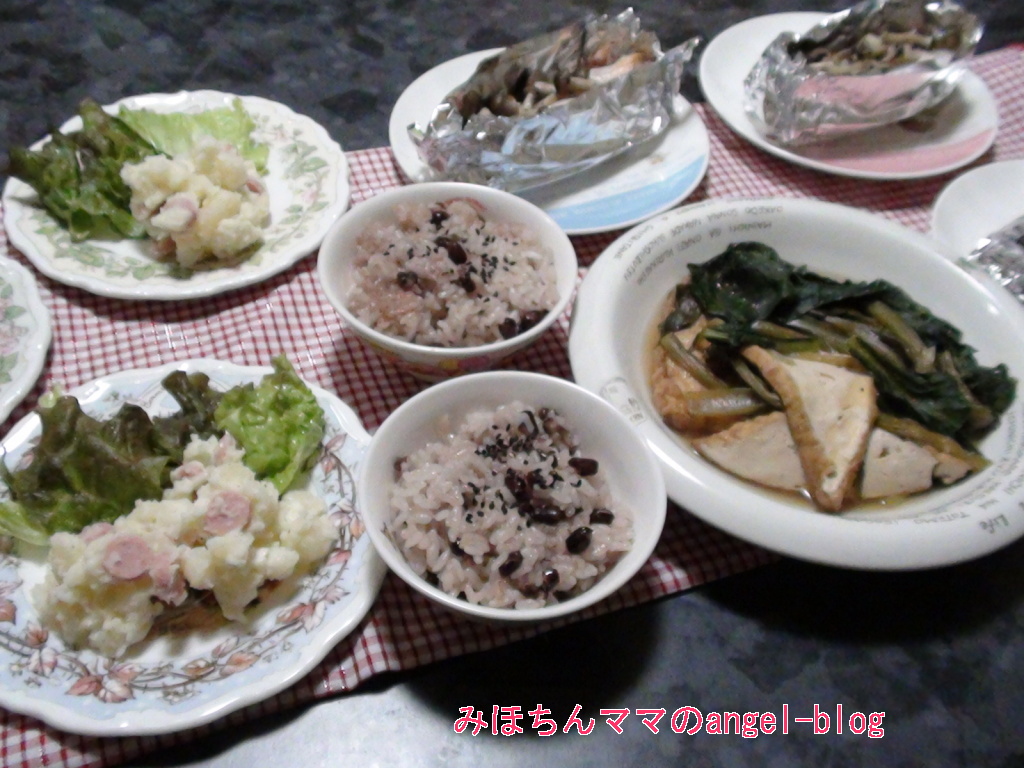 さつまいもの甘煮は前日ご飯からの取り分けです。