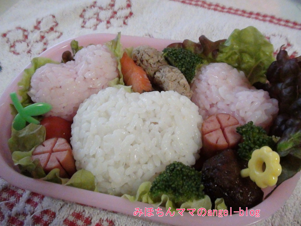幼稚園のキャラ弁☆トラコミュ集おにぎりのピンクは粉末すし酢のピンク色で