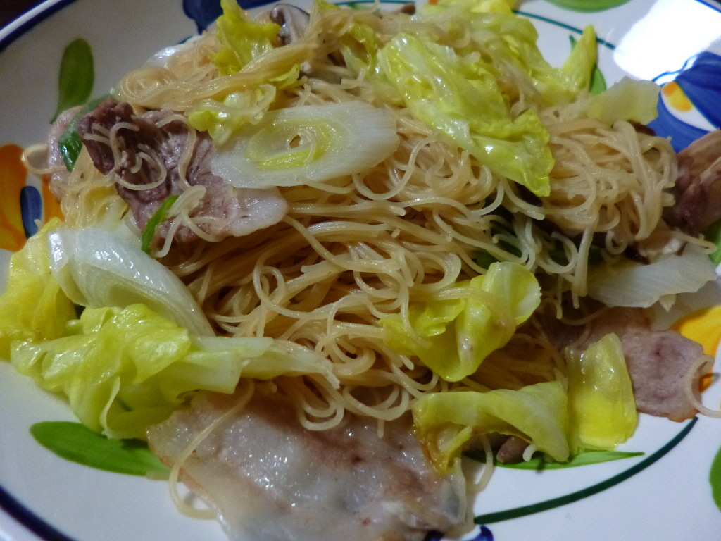 ちょうど野菜室に白ネギ・人参・椎茸があったので焼きビーフンにしました☆