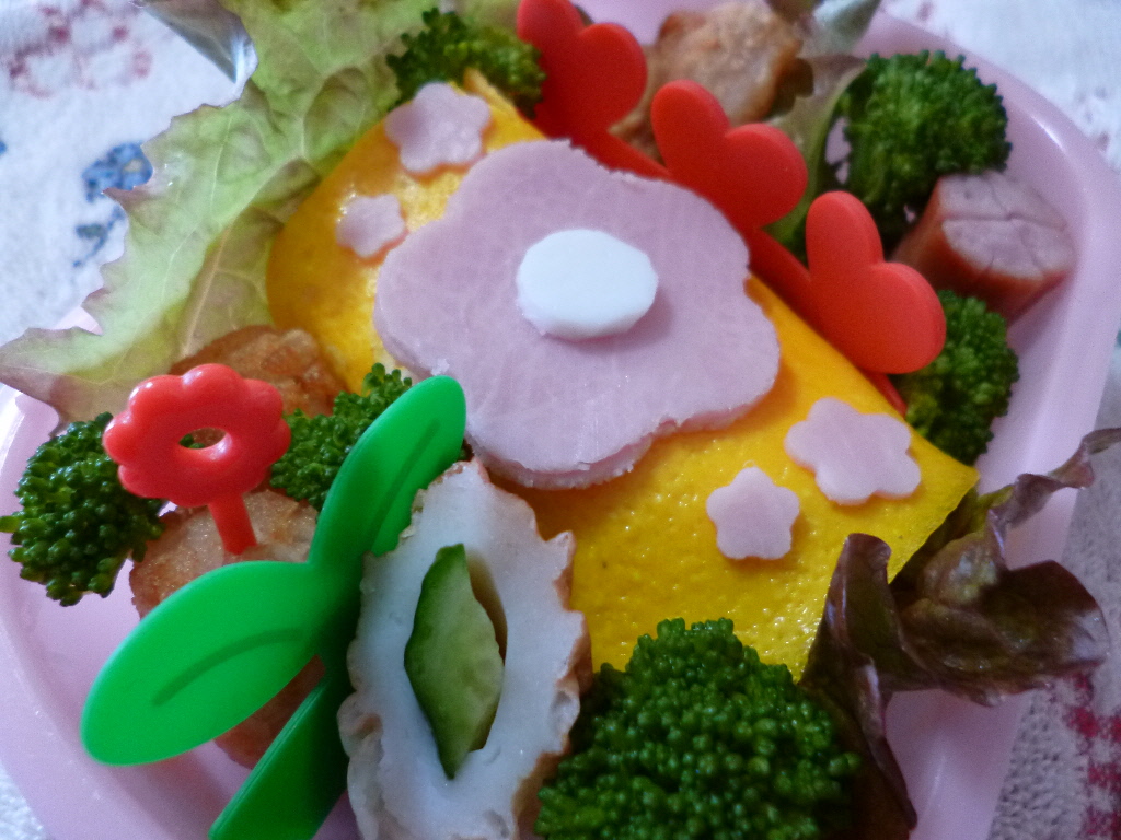 オムライスメインで春っぽいデコ弁当にしました(*^^*)