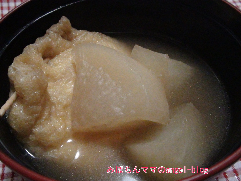 餅きんちゃくに☆大根と一緒におでん風の味付けで