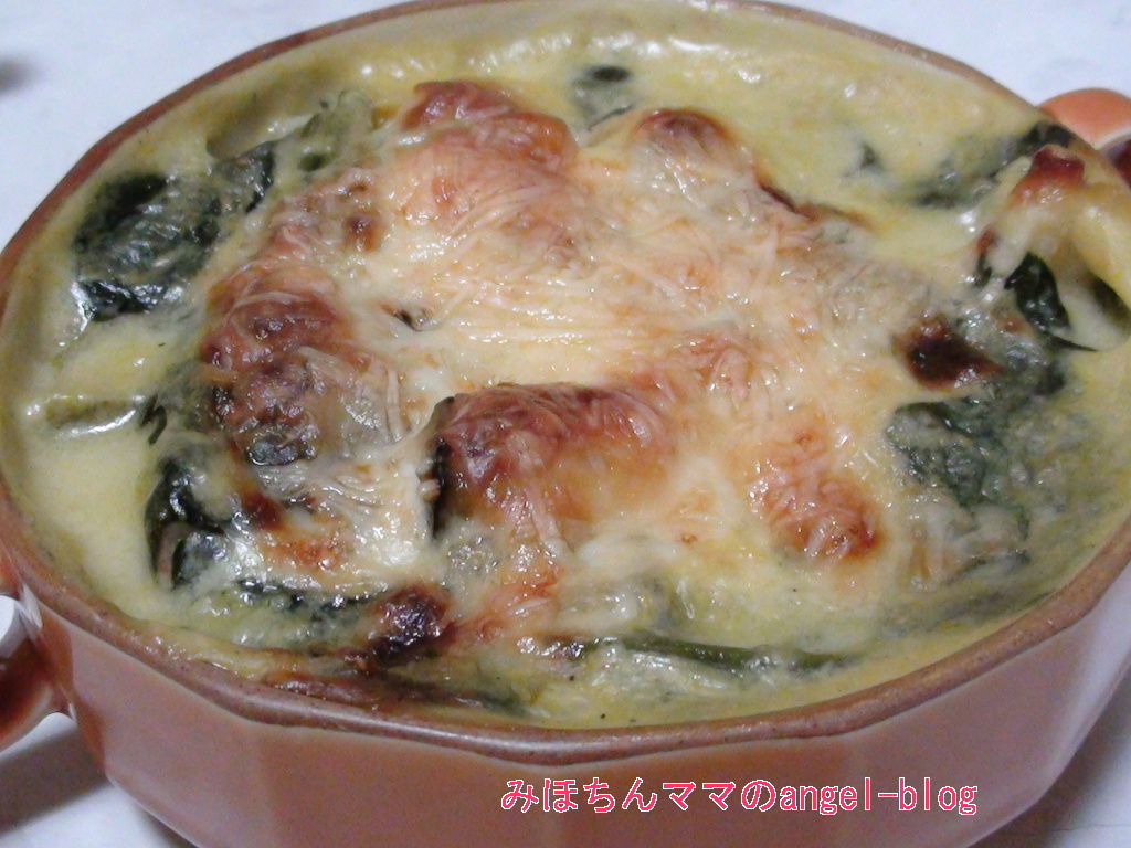ほうれん草とカボチャのマカロニグラタン