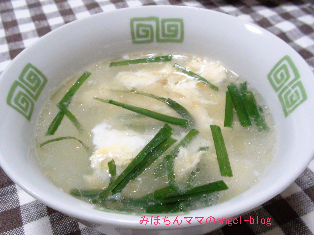 仕上げにゴマ油をちょっと加えてニラタマスープです