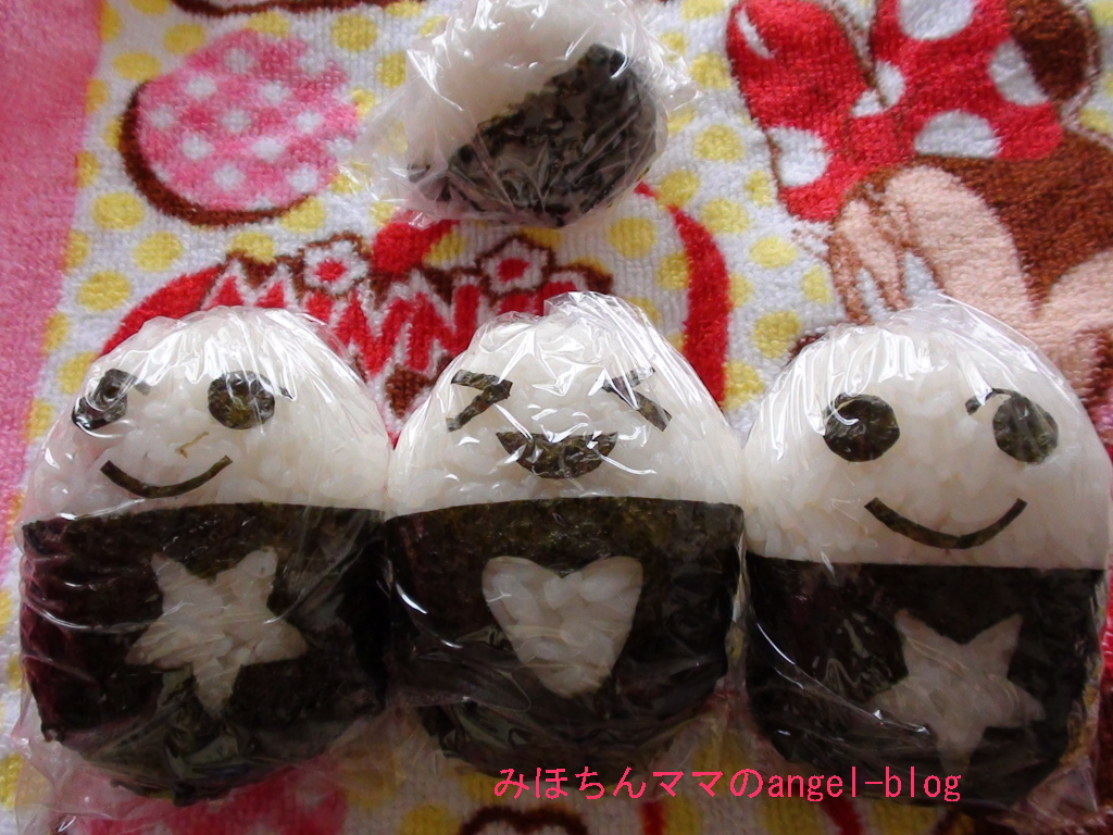 前回の遠足の時のオニギリたち。下の3つは私が作ったものですが