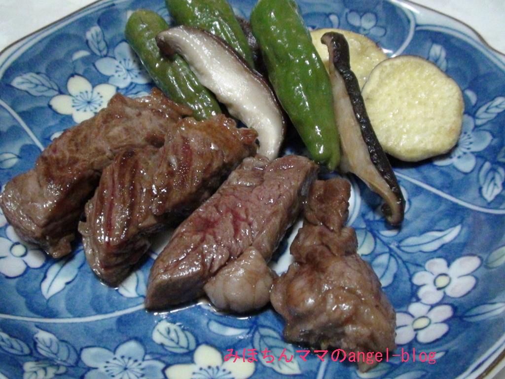 ししとう、さつまいも、家にあった椎茸を軽く塩で炒める。