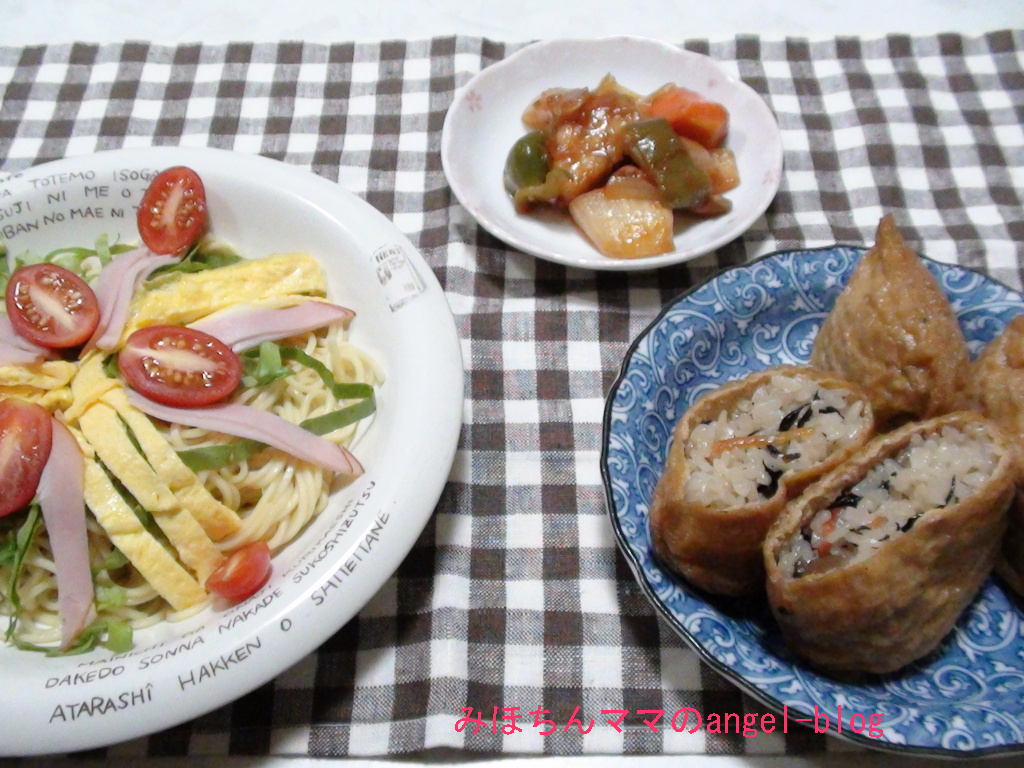 おいなりさんがたくさんあったので、冷やし中華は少なめで。