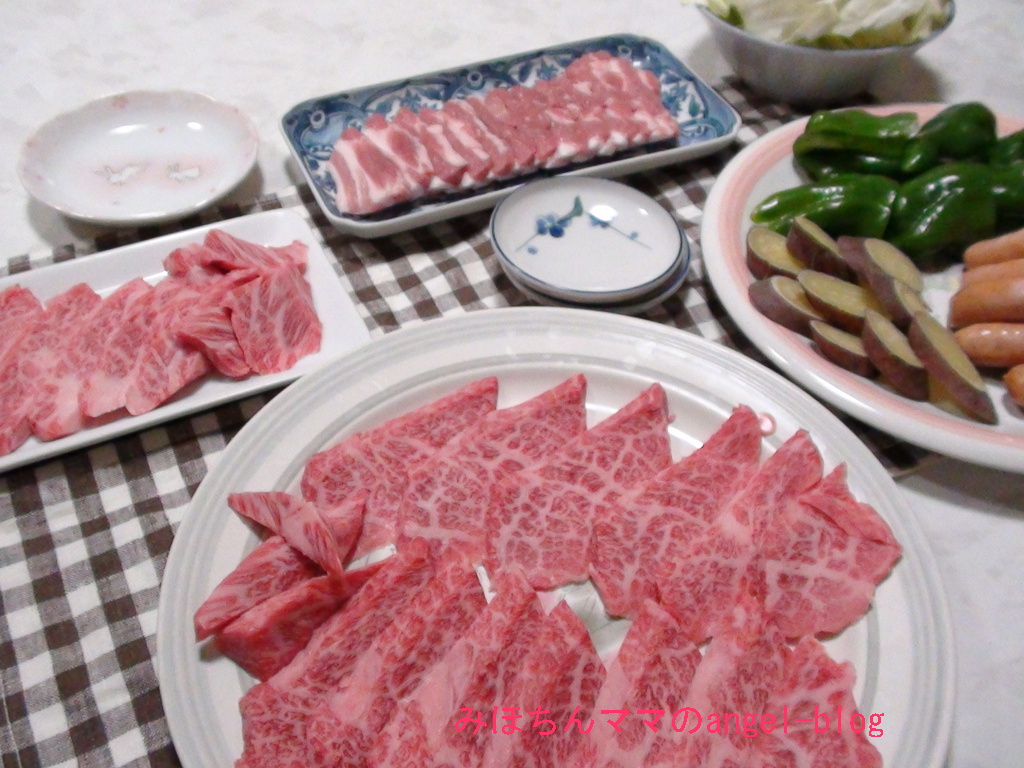奥の青いお皿だけ焼肉用の豚肉です。