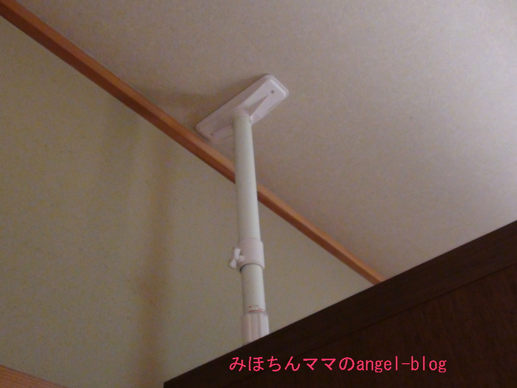 ↑家具の転倒防止の突っ張り棒。左右に1本ずつ☆
