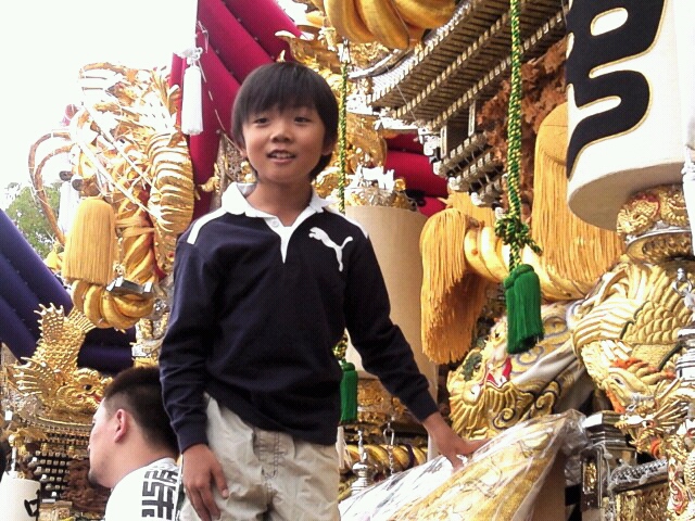 空き時間に、友達に頼んで屋台に乗せてもらう息子(*^^*)